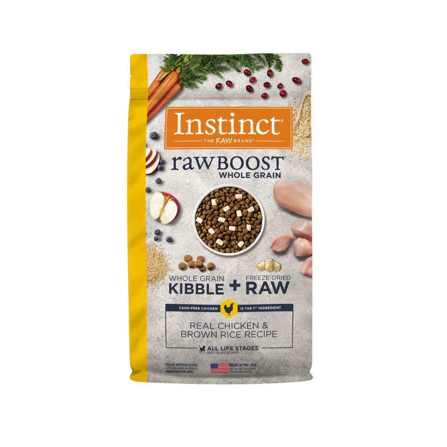 A high-protein, nutrient-rich dog food that combines whole grain kibble with raw chicken pieces for boosted nutrition. Made without common fillers like corn, wheat, and soy, this recipe offers a simple, wholesome diet ideal for any pet at various life stages.