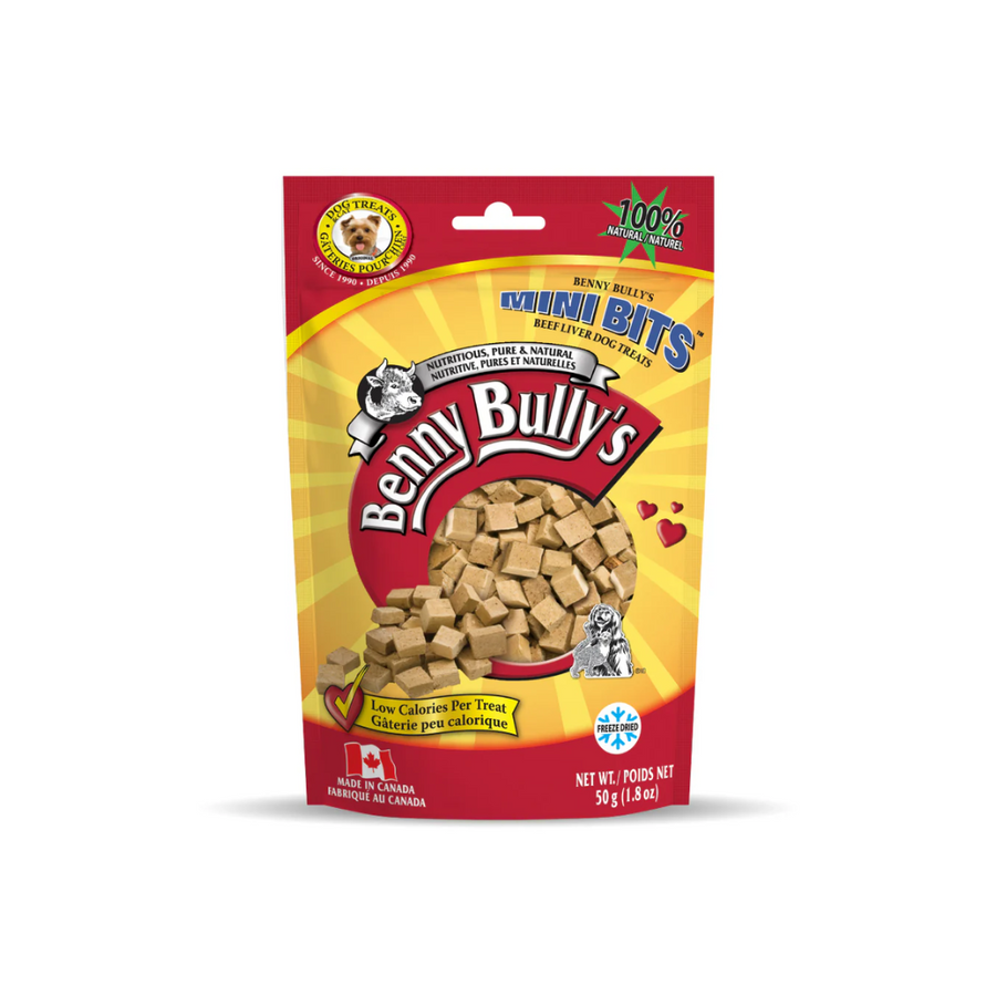 Benny Bully's Freeze Dried Dog Treats Mini Bits Beef Liver are made from 100% pure beef liver, freeze-dried into small cubes, perfect for training dogs of all breeds and ages. Available in two convenient sizes, these healthy and delicious treats are sure to become a staple in your dog's training routine.