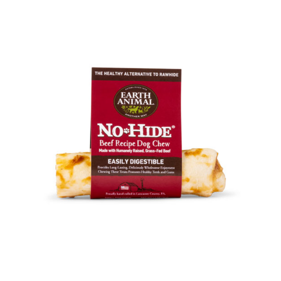Earth Animal No-Hide Beef Recipe Chews are a safe, healthy, and delicious alternative to rawhide. Hand-rolled, uniquely cooked, and air-dried, these chews provide long-lasting enjoyment that’s highly digestible and nutritious. Made in the USA with simple, wholesome ingredients, they are completely free from rawhide, bleaches, formaldehydes, and chemicals—making them a natural choice for dogs of all shapes and sizes. Available in multiple sizes to fit your dog’s chewing style.