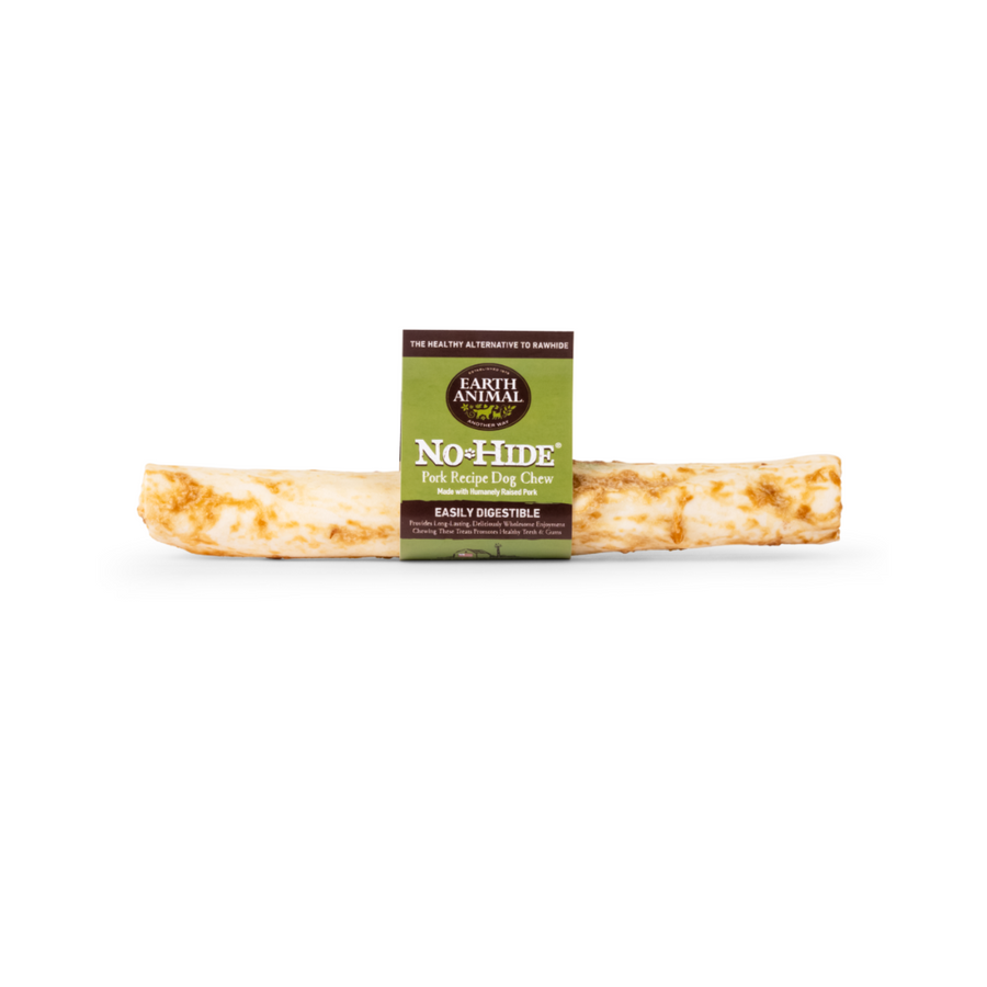 Earth Animal No-Hide Pork Recipe Chews are the original healthy, long-lasting alternative to rawhide. Crafted with simple, sustainably sourced ingredients, these chews are both safe and enjoyable for your dog. Available in a variety of sizes, including stix, strips, and rolls, they provide stimulation, enrichment, and a natural chewing experience without bleach, synthetics, or preservatives. Perfect for dogs of all sizes and ages.