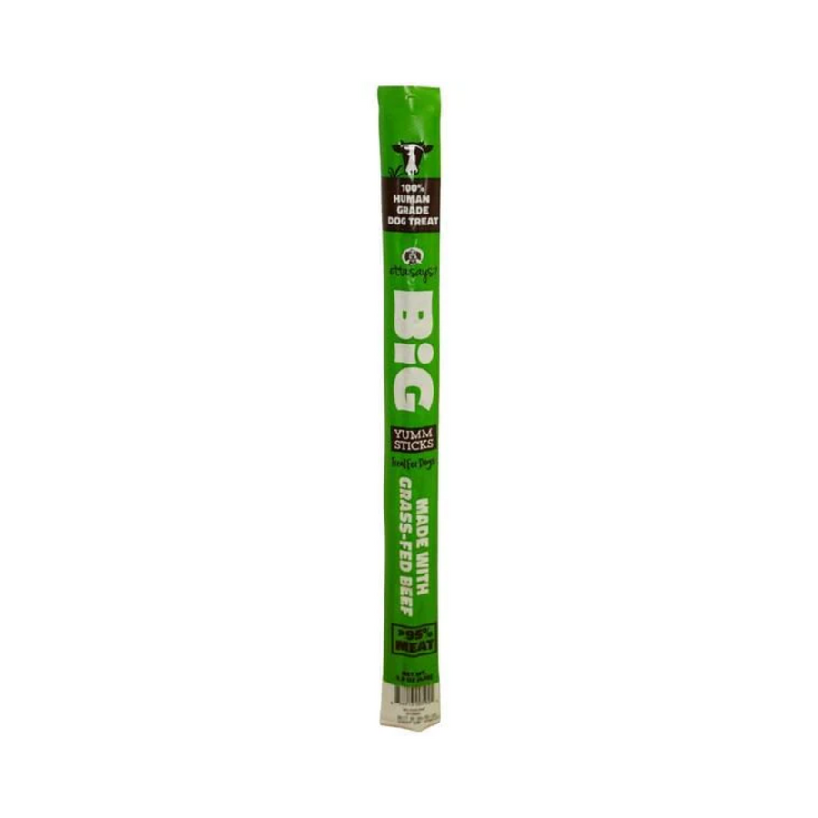 Etta Says! BIG Yumm Stick! Beef is a bold and flavorful chew made with grass-fed beef and pork to deliver a high-protein, low-fat treat your dog will crave. Each stick is individually wrapped for freshness and convenience, making it perfect for adventures, travel, or quick rewards. Proudly made in the USA with 100% human-grade ingredients, it’s a delicious, guilt-free snack you can feel good about.