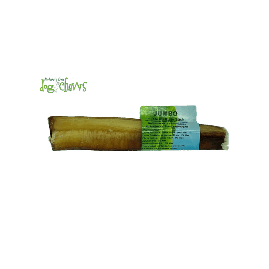 Indulge your canine friend with the ultimate chew treat, the Jumbo Bully Stick, specifically crafted for large dogs. Measuring 6 or 12 inches, this premium bully stick provides long-lasting enjoyment, promoting healthy chewing habits and dental hygiene. Made from free-range South American cattle, it's a natural, fully digestible treat that supports strong, clean teeth and satisfies your dog's innate urge to chew.