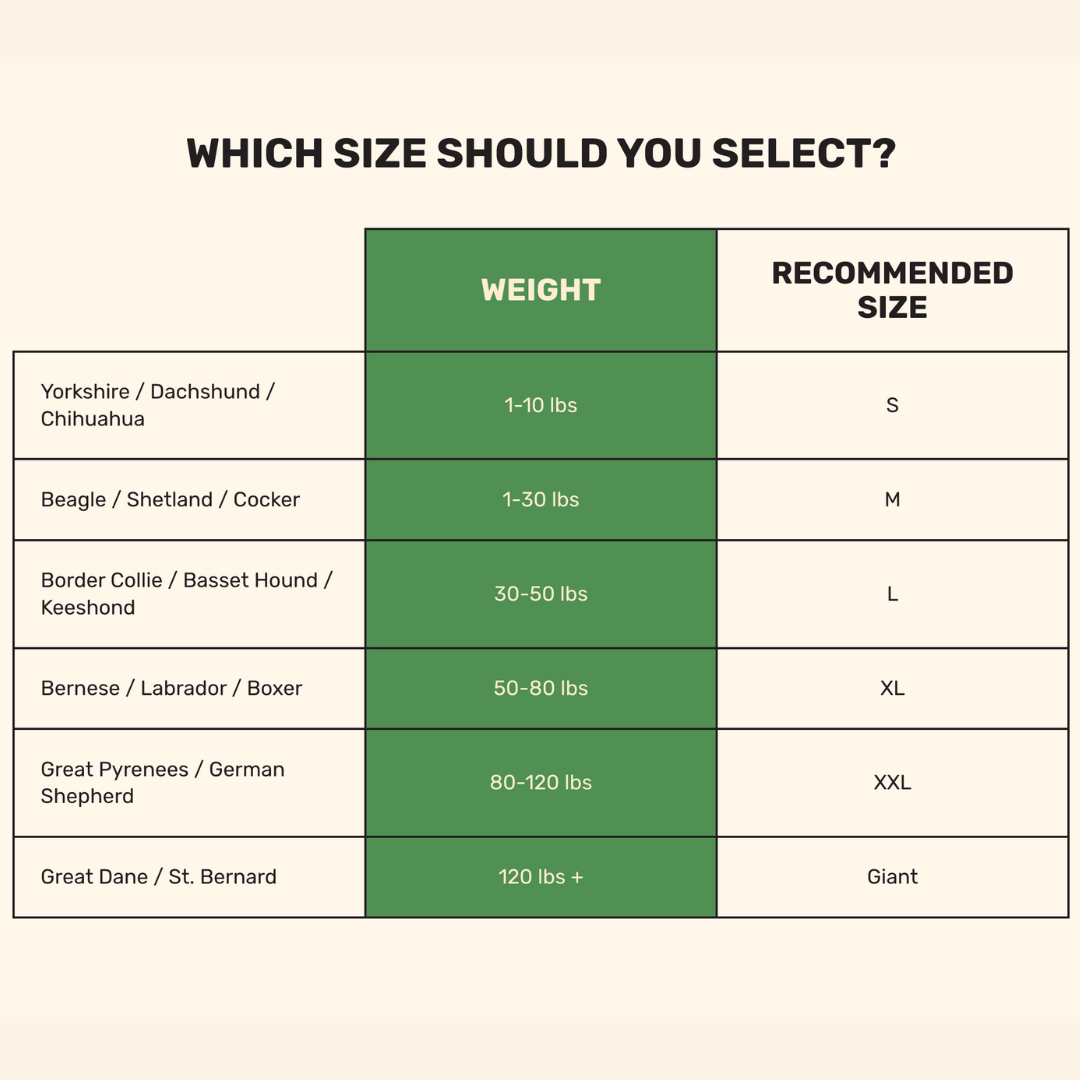 | 120+ lbs (Great Dane, St. Bernard) | Giant |