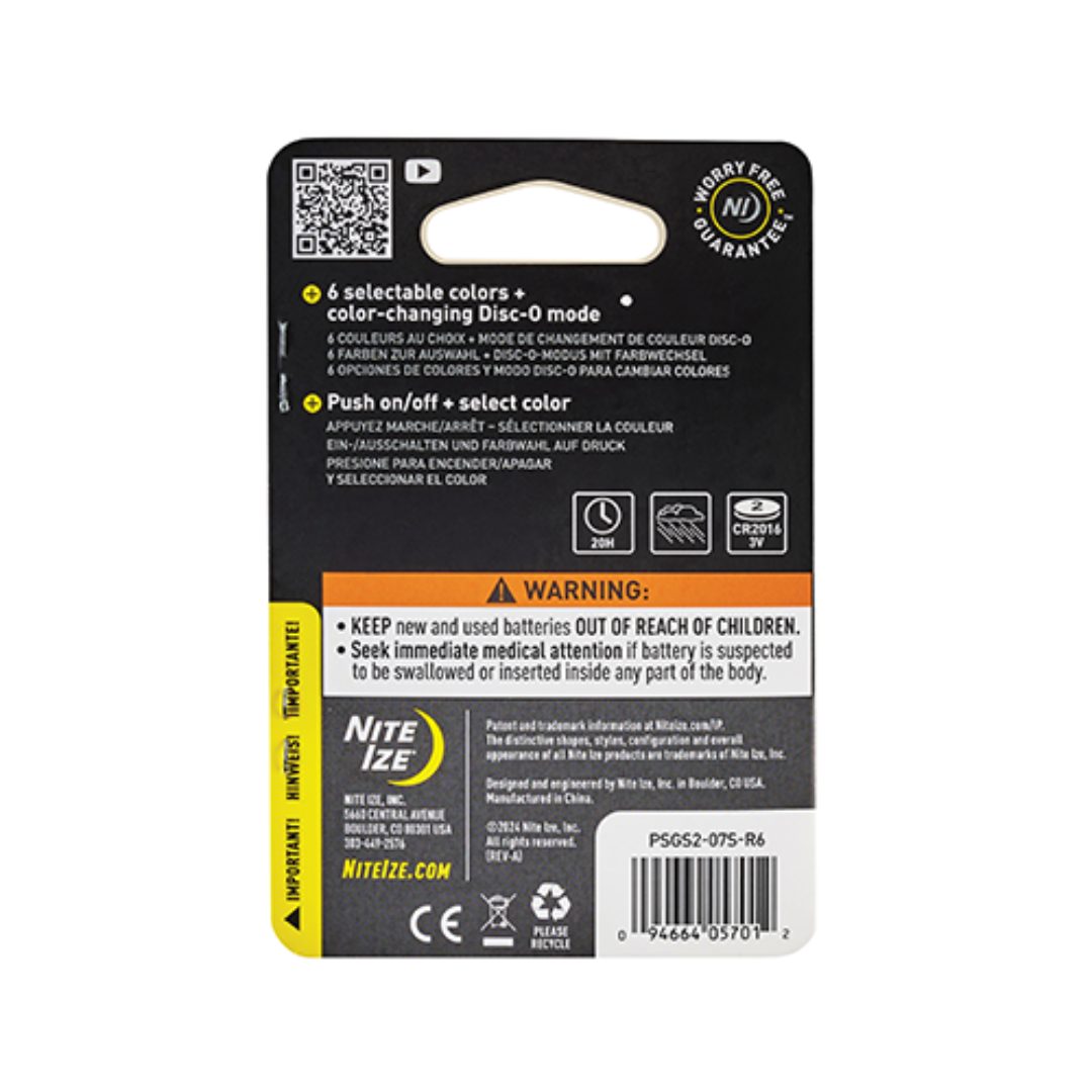 Light modes: 4 glow/flash colors + Disc-O color-changing mode