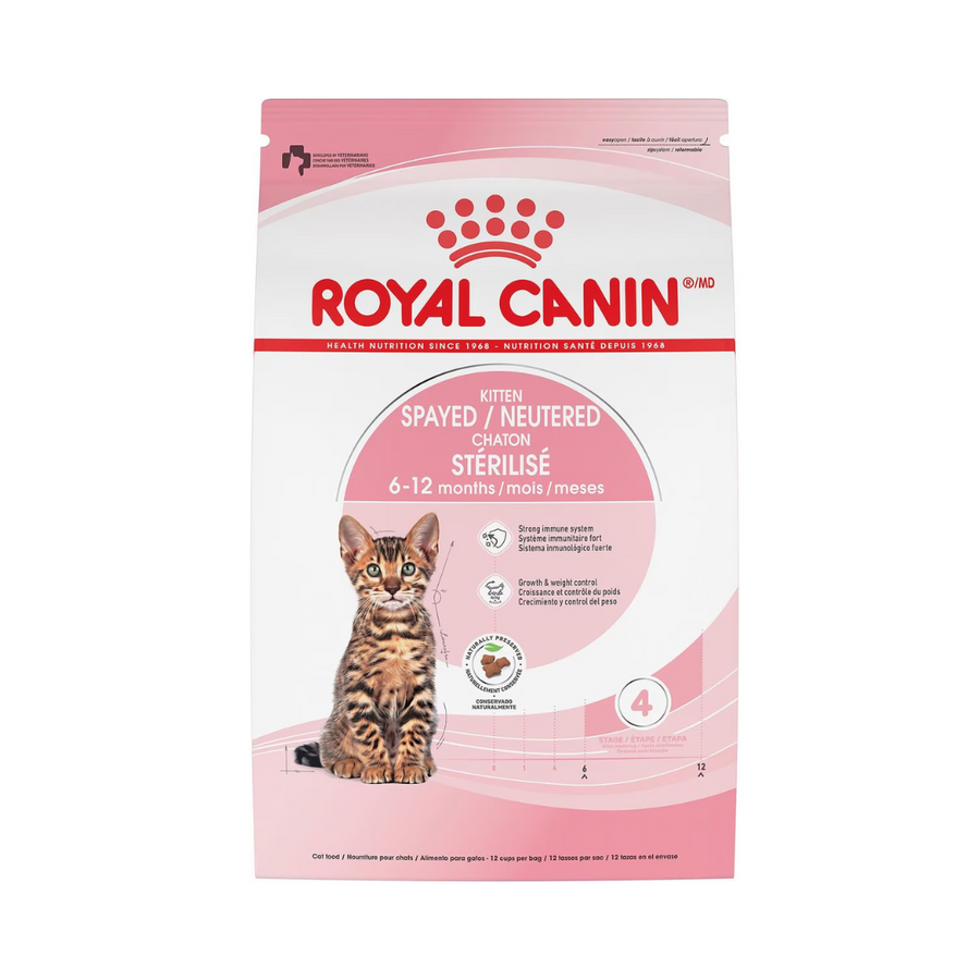 Royal Canin Dry Cat Food – Kitten Spayed/Neutered is specially formulated for kittens up to 12 months old following spay or neuter surgery. With a precise blend of nutrients, this diet supports healthy growth, helps manage weight, and promotes optimal digestion. Tailored for the needs of sterilized kittens, it includes antioxidants for immune health and is designed with an X-shaped kibble that’s easy for little mouths to grasp and chew.