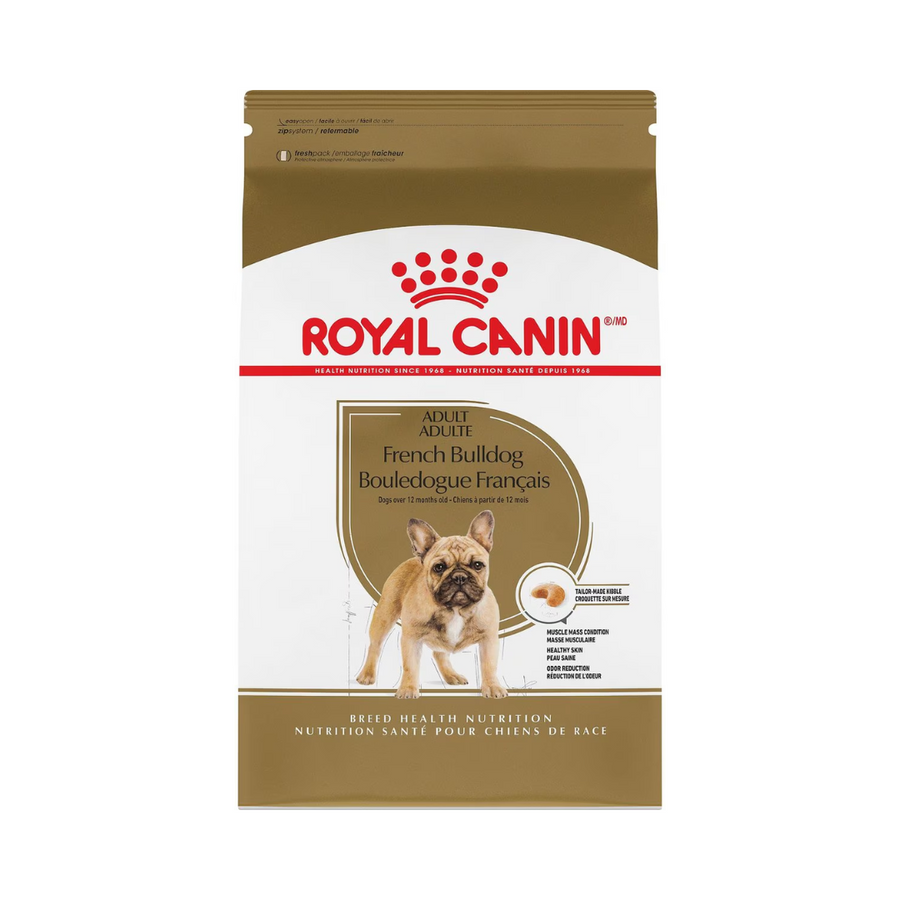 Royal Canin French Bulldog Adult Dry Dog Food is specifically designed to meet the nutritional needs of purebred French Bulldogs aged 12 months and older. This breed-specific formula helps support muscle tone, reinforces the skin barrier, and reduces gas and stool odor, thanks to highly digestible proteins and precise fiber content. The tailor-made kibble is designed for French Bulldogs' short muzzles, making it easier for them to pick up and chew.
