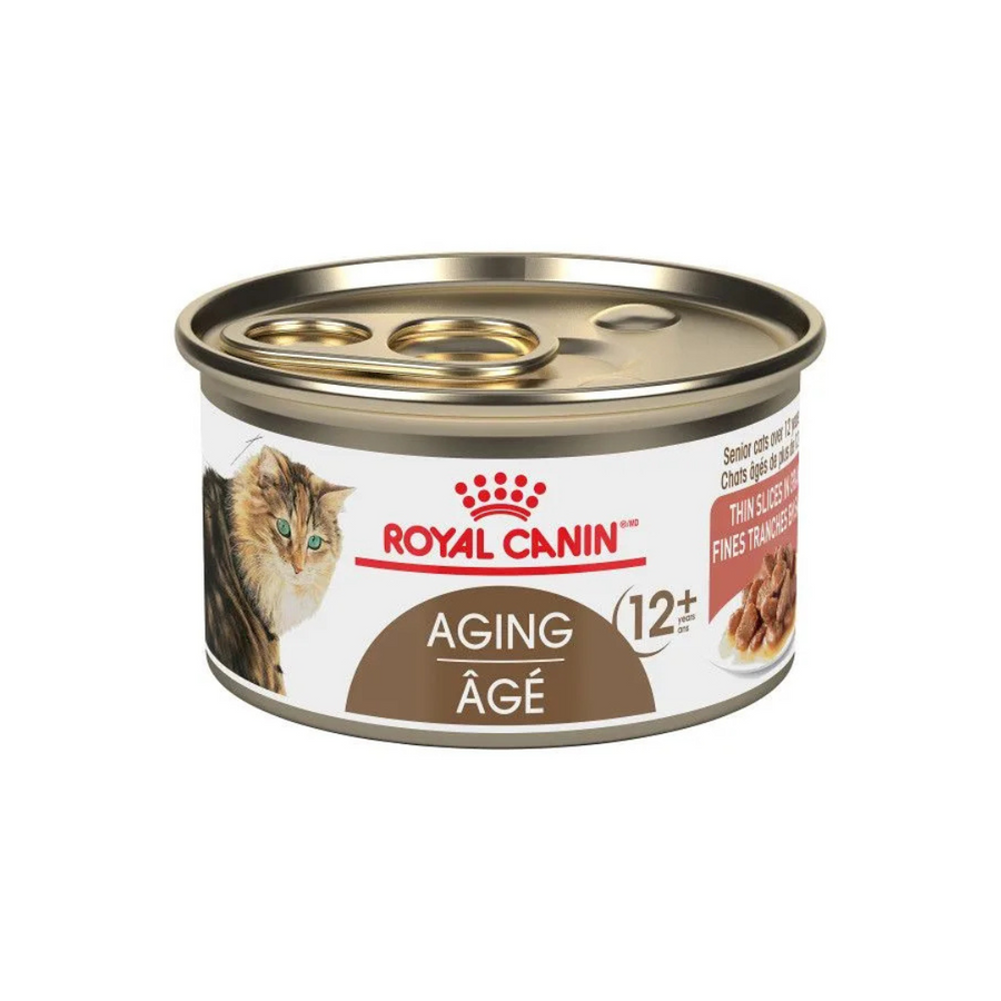 Royal Canin Aging 12+ Thin Slices in Gravy Canned Cat Food is an excellent option for your aging cat. Aging 12+ has EPA and DHA anti-inflammatory omega 3s, along with glucosamine and chondroitin to help support the delicate joints of your aging cat. EPA and DHA also help to support the kidney health of your senior cat.